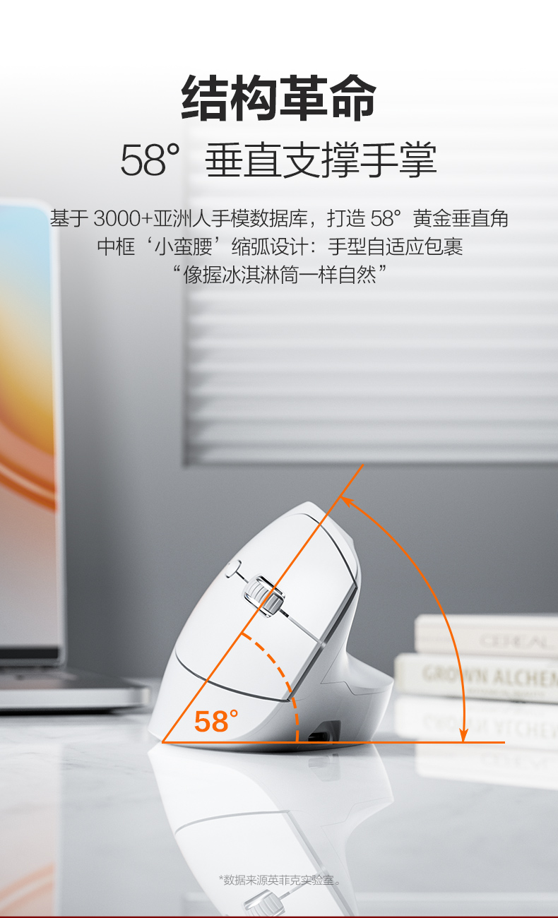 58°垂直支撑手掌,手型自适应包裹更舒适