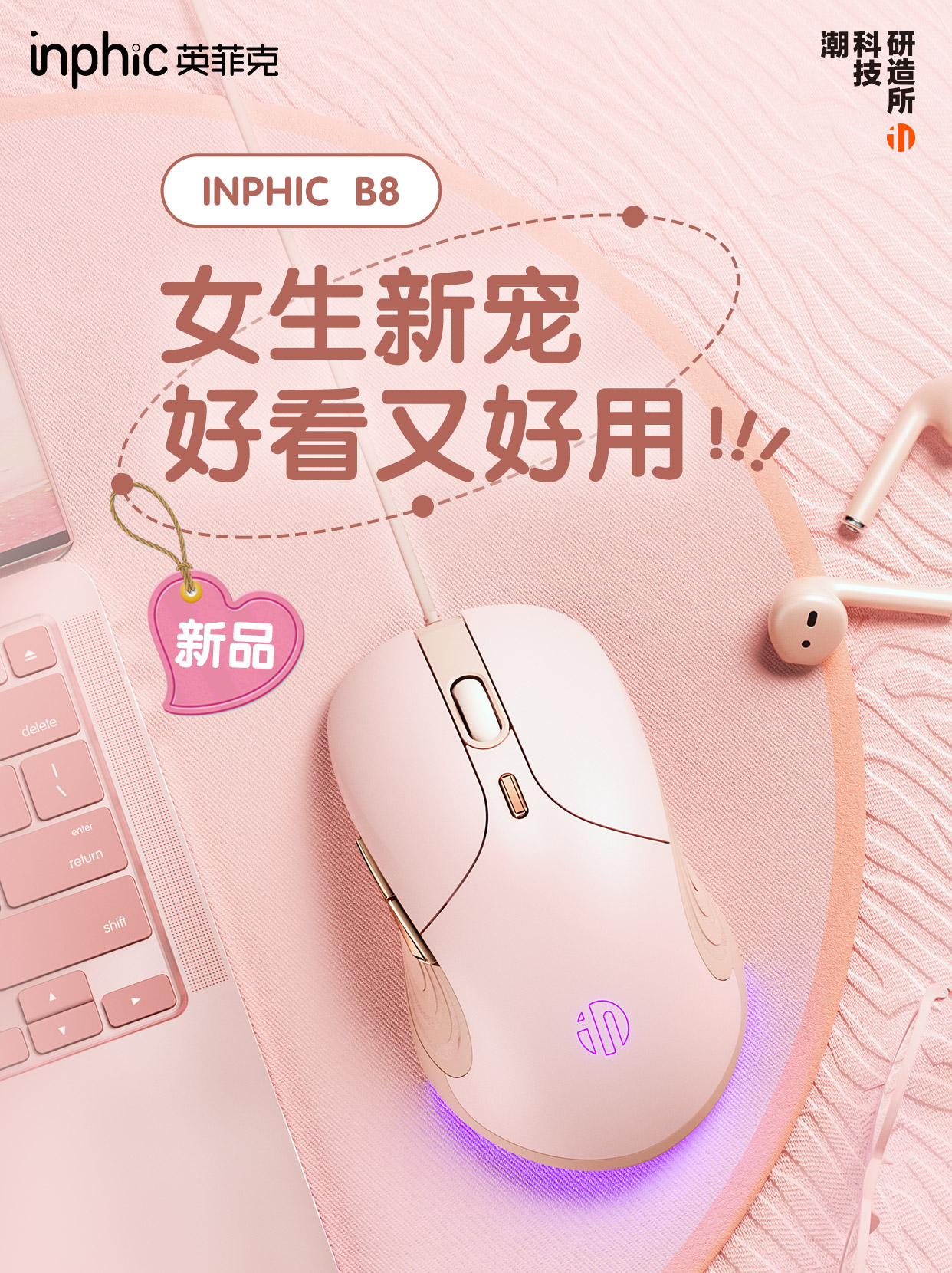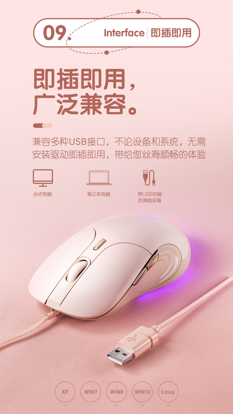 女生新宠「英菲克B8有线鼠标」携爱上线